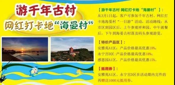 从3月1日起,来园客户可到千年古村、网红打卡地“海晏村”开展“一日游”活动。